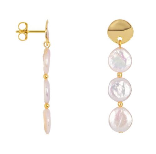 PENDIENTE PLATA 925 TRES PERLAS CULTIVADAS COIN 11.5-12.5MM PERLA BLANCA BRILLO ORO